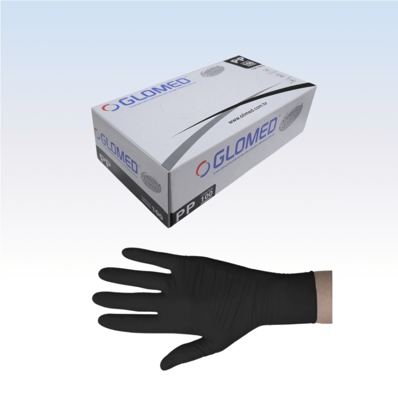 Descrição: As luvas de procedimento são confeccionadas em borracha sintética (nitril). São ambidestras, lisas, isentas de pó e com superfície texturizada nas pontas dos dedos.