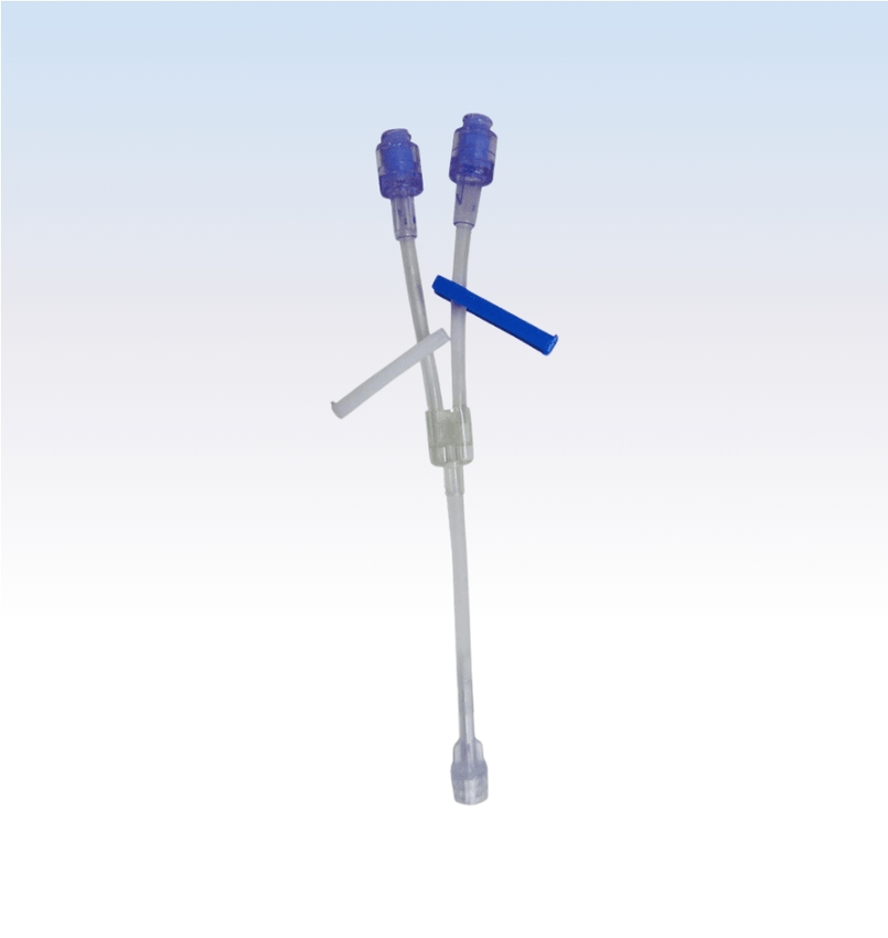 tampa luer lock em seu ramo proximal e em seus ramos distais conectores valvulados