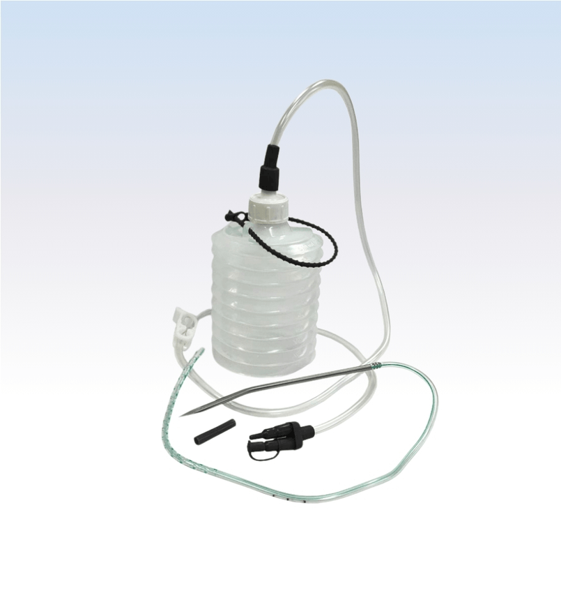 Descrição: O dreno de sucção é composto por um reservatório sanfonado em Polietileno com capacidade de 500ml. Este reservatório está conectado a um tubo extensor flexível em PVC, com 1 metro de extensão, equipado com um clamp corta fluxo e conector de 2 vias. Disponível no modelo com agulha curva perfurada em aço inox.