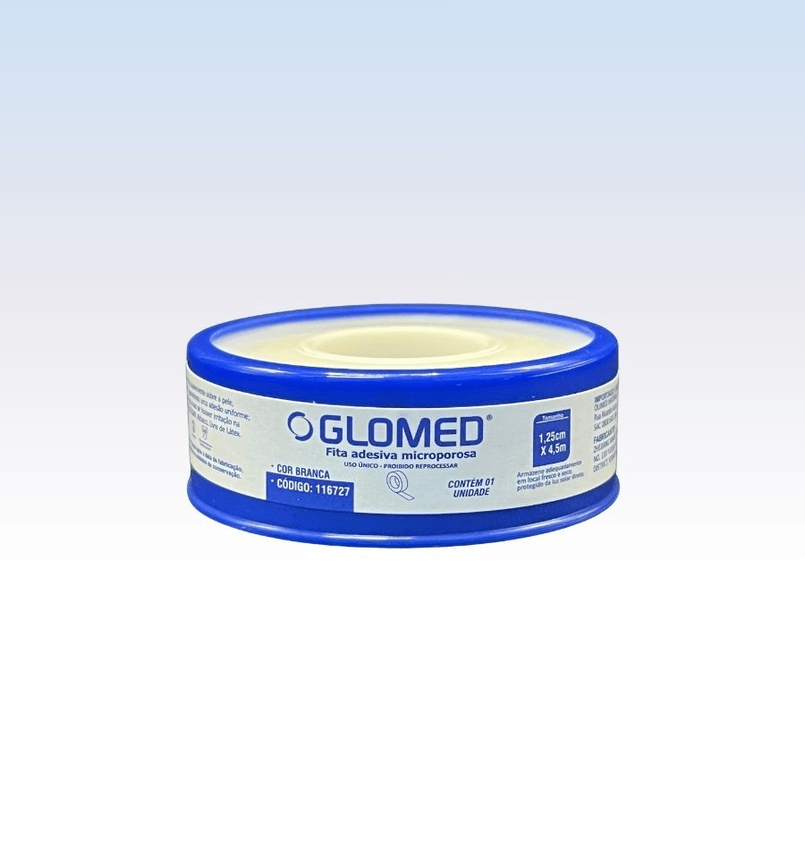 Descrição:  Fita Microporosa – GLOMED é composta por fibras de poliéster poroso, o que permite a passagem do ar e da umidade, ajudando na ventilação da pele. Sua camada adesiva é formulada com um adesivo acrílico hipoalergênico, projetado para oferecer aderência segura sem causar irritações cutâneas.  A fita é acondicionada em carretel e capa de polietileno.