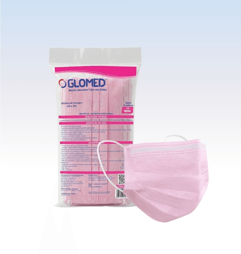 Início › MÉDICO-HOSPITALAR › Máscaras › Mascara desc. tripla c/ elastico rosa glomed - pct c/ 50 und (69004)